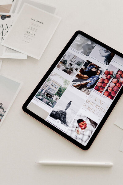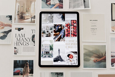Anything that inspires you, colors and fonts you're drawn to, branding you love, lifestyle images that align with your values, design aesthetic, and anything you envision for your brand and/or website. Click here for an example. Don't forget to add me as a collaborator or email me a link to your board.